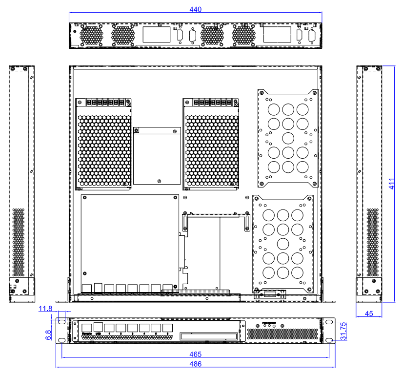 (備注:1、雙電源時, 隻有1個3.5寸硬盤位; 2、每個3.5寸硬盤位可替換為2個2.5寸硬盤)