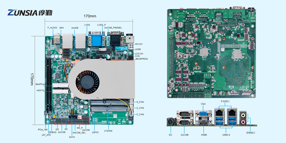 存儲方麵有1個mSATA和1個SATA3.0接口,顯示方麵有1個HDMI、1個VGA和1個LVDS/eDP(2選1)接口;豐富的工業接口,有PCIe X16、MiniPCIe、LAN、COM、GPIO、CAN等。可以連接各種電力設備,如傳感器、控製器、數據采集設備等,實現對電力設備的監測與控製、存儲采集到的電力數據,以便後續分析和處理。