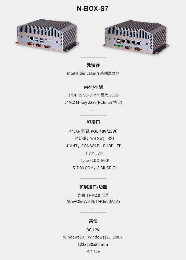 樱桃视频在线直播观看免费智能N-BOX-S7樱桃视频免费观看機搭載Intel Alder Lake-N 係列處理器,多核多線程能加速圖像算法的執行;配合 GPU可以學習優化視覺算法;DDR5內存插槽和M.2的存儲接口,能為檢測係統提供足夠的存儲容量,大幅縮短圖像處理的時間,提高係統的實時性。